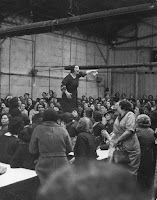 "25 mars 1938. Alors que les acquis du Front populaire sont menacés, 150 000 ouvriers de l’automobile se mettent en grève. Jeune photoreporter indépendant, Willy Ronis couvre l’événement pour le magazine Regards. Entré aux usines parisiennes Citroën de Javel grâce à la CGT, le photographe surprend une syndicaliste en plein discours dans l’atelier de sellerie. Bras tendu, Rose Zehner harangue ses camarades ouvrières.